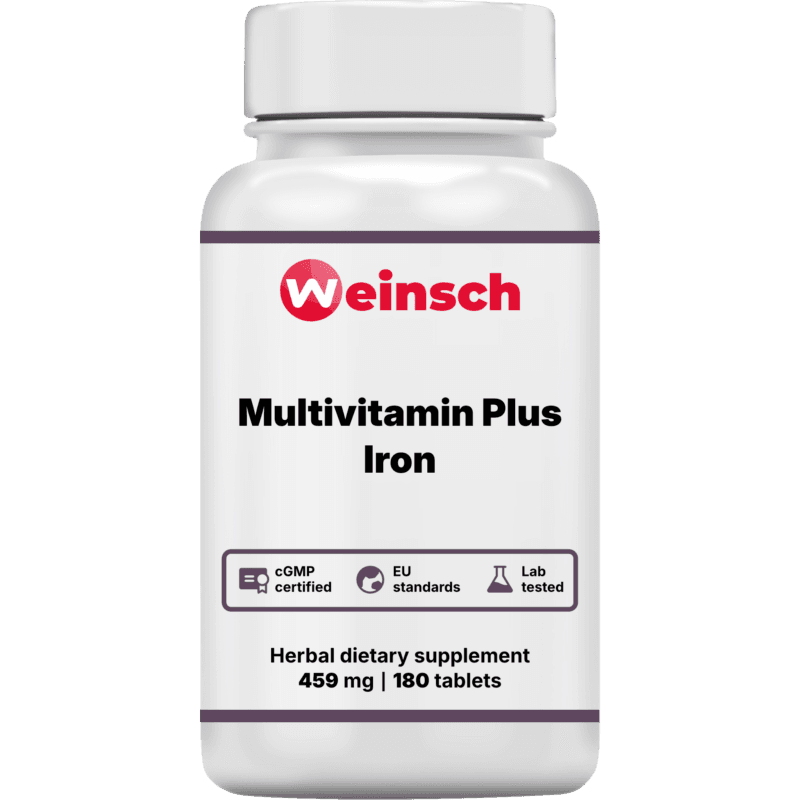 A Multivitamin Plus Iron formula provides a comprehensive spectrum of essential nutrients, specifically designed to bridge daily nutritional gaps while actively supporting the body's energy and oxygenation pathways. Iron is the critical central component of hemoglobin, the protein within red blood cells directly responsible for binding and transporting oxygen from the lungs to every tissue and organ in the body. By combining iron with a full suite of vitamins - such as Vitamin C to significantly enhance iron absorption, and B-vitamins to drive cellular energy metabolism - this formula ensures that oxygen delivery and energy production function at peak efficiency. By optimizing the formation of healthy red blood cells and facilitating the mitochondrial production of ATP (cellular energy), this synergistic blend helps reduce tiredness and fatigue, supports cognitive focus, and creates the optimal conditions for sustained physical stamina and deep constitutional vitality.