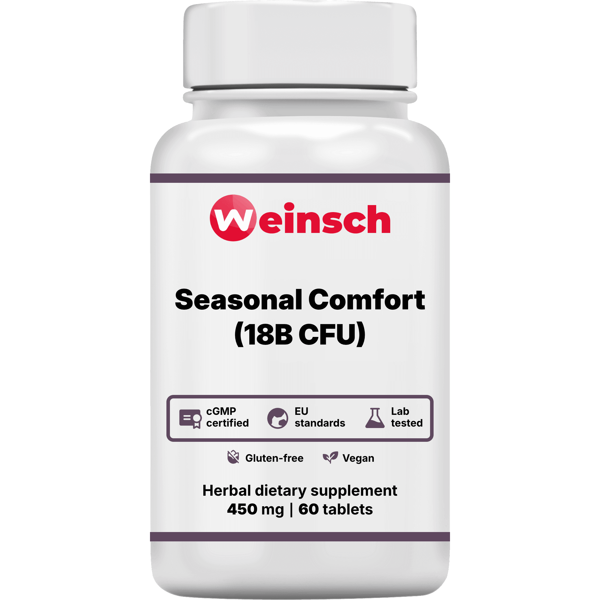 Weinsch Seasonal Comfort (18B CFU) (Special Constitution) delivers a specialized, high-potency probiotic blend formulated to modulate the body's immune responses and enhance systemic resilience. Because a vast majority of the immune system resides in the gut-associated lymphoid tissue (GALT), this 18-billion CFU complex actively trains immune cells to distinguish between harmless environmental particles and actual pathogens. By reinforcing the integrity of the intestinal barrier, these beneficial strains help prevent the translocation of undigested proteins that often trigger allergic cascades and histamine release. Furthermore, this targeted microbiome support promotes the production of anti-inflammatory compounds that calm overactive immune pathways, reducing the severity of hypersensitivity reactions. The result is a fortified internal defense system that allows the body to interact gracefully with its environment, minimizing seasonal or dietary allergic disruptions while maintaining robust daily vitality.