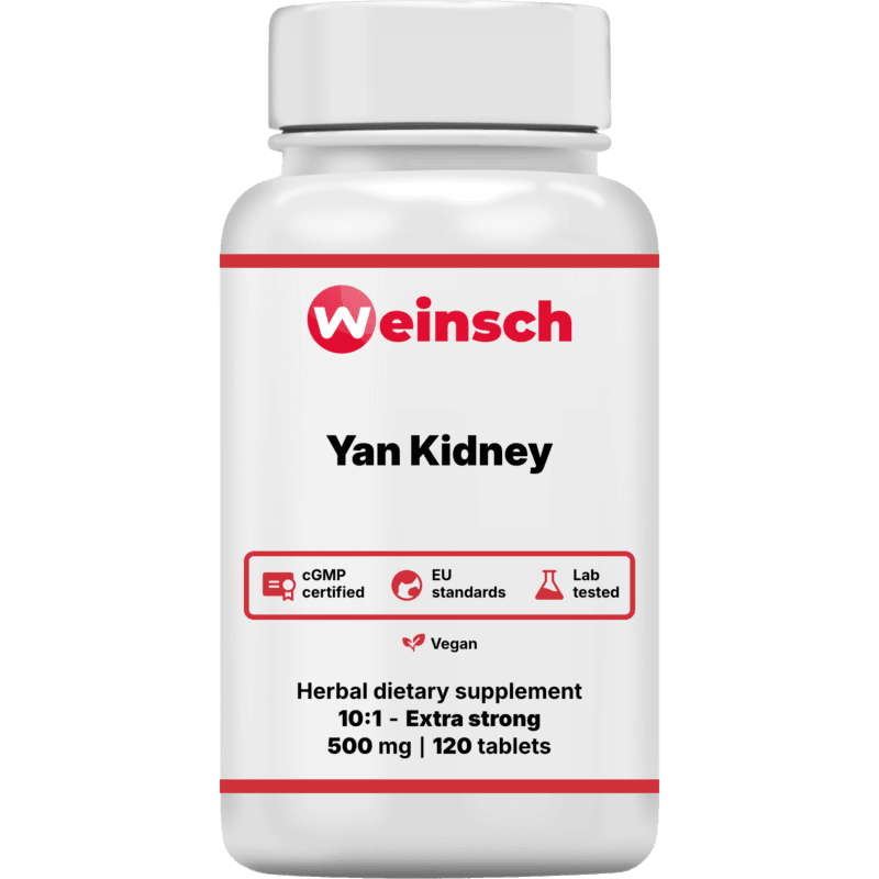 Weinsch Yan Kidney Extra Strong is based on the classical Jin Gui Shen Qi Wan ("Kidney Qi Pill from the Golden Cabinet"), first recorded in the Han Dynasty text Jin Gui Yao Lue by Zhang Zhongjing. In the context of traditional Chinese herbal history, this specific combination of botanicals (including Rehmannia and Cinnamon) was described as a method to "warm the Yang" and "tonify the Life Gate" within the TCM theoretical framework. These descriptions refer exclusively to the traditional characterization of the ingredients within the Chinese herbal paradigm and do not refer to modern anatomical structures or verified physiological effects.​